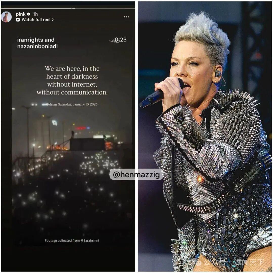 (当好莱坞大多数明星保持沉默时,歌手Pink 为伊朗人民发声)