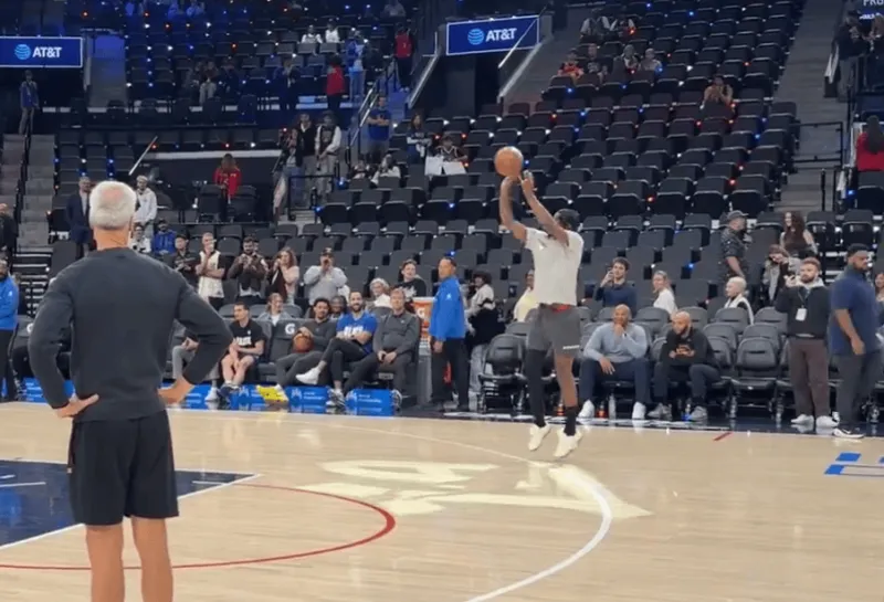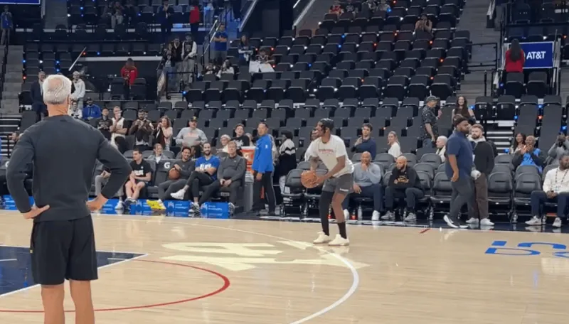 赛前,勇士记者AnthonyVslater更新社媒:“巴特勒目前随勇士现身洛杉矶,他刚刚在斯蒂芬-库里热身时露面,虽然他行动有些迟缓,但他已经不用拐杖了。”